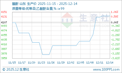 据生意社商品行情分析系统,截止12月14日,醋酐价格4135元/吨,较12月8日醋酐价格4030元/吨上涨,涨幅2.61%。本周醋酸价格延续挺涨,醋酐成本支撑强劲;供应端部分醋酐装置停车检修,开工率下降,市场供给减少,下游入市平稳跟进,需求支撑尚可,醋酐厂家心态看好,醋酐价格偏强上涨。