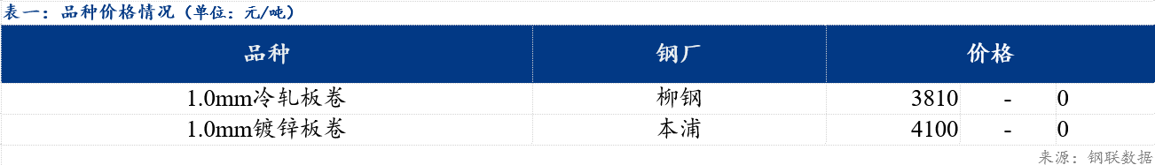 今日市场冷轧板卷主流资源价格3810元/吨,较上一交易日持平,镀锌板卷主流资源价格4100元/吨,较上一交易日价格持平。