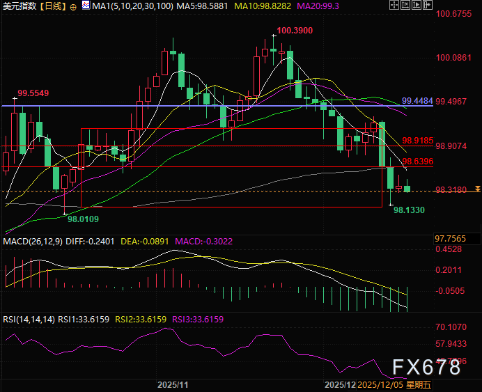 分析师共识预期各大投行纷纷下调美元指数预测,认为其至少要到2026年年中才有望重新站上99关口。
