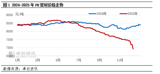 自下半年开始,PP管材在供需拖累下一直延续下跌趋势不改,而且进入到12月份跌幅有所扩大。除供需偏弱对市场拖累外,上游石化企业去库压力增大,也加速了市场价格的下跌,各环节维持降价去库为主,基于去库压力,石化出厂价格多数下调,下调幅度在150-250元/吨不等,成本支撑减弱明显,贸易商亦跟跌出货为主,而需求未有好转,同时预期谨慎下工厂小单低价采购为主,市场成交放量不足,贸易商多让利出货,价格延续跌势且跌幅扩大。