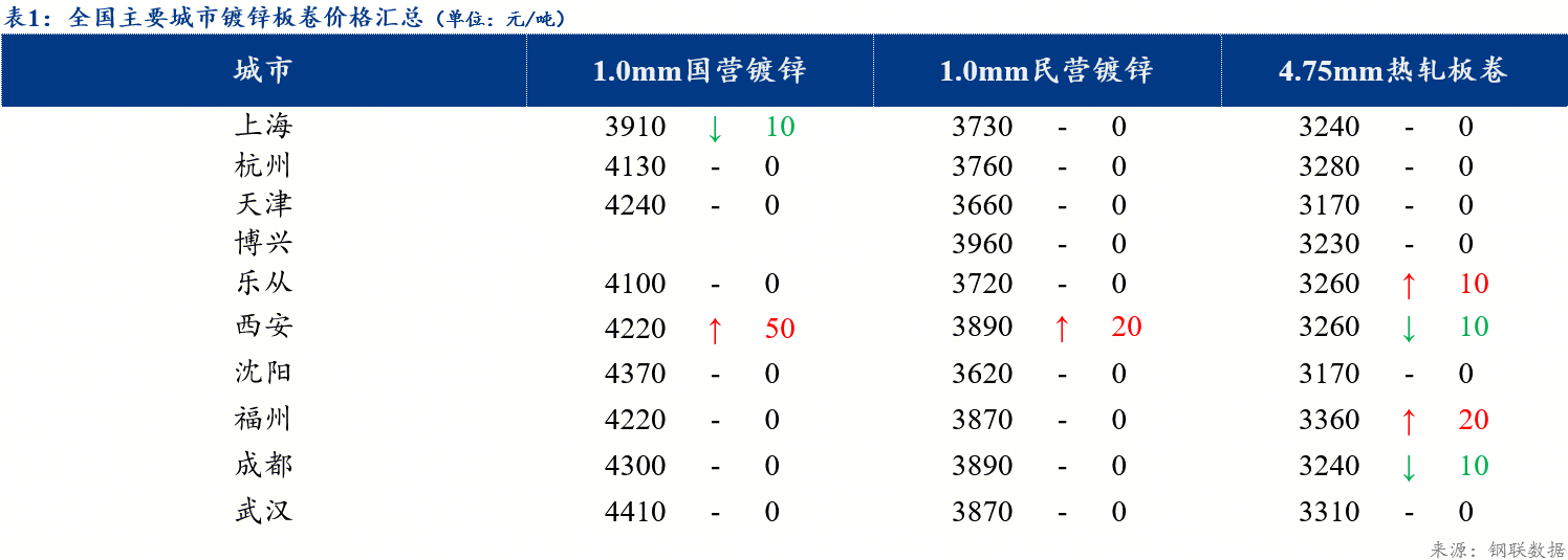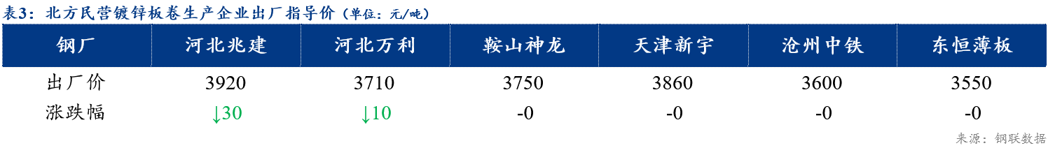 【钢厂调价】今日各地区民营镀锌钢厂出厂价格部分下调10-30元/吨,北方资源出厂价在3710元/吨左右。