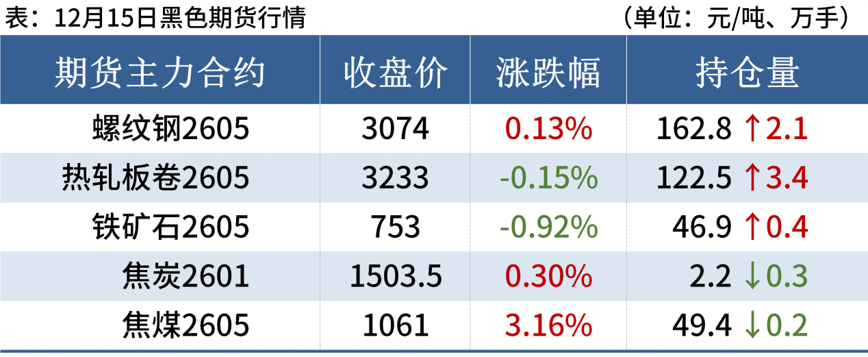 铁矿石:12月15日,山东港口进口铁矿价格较上一工作日小幅下跌,累计下跌2-5。区域内贸易商报价积极性尚可,截至目前成交较少;买盘方面,区域内钢厂按需补库,询盘较少。目前60.8%PB粉主流在772-775;超特粉主流在665-670;PB块主流在860-865。