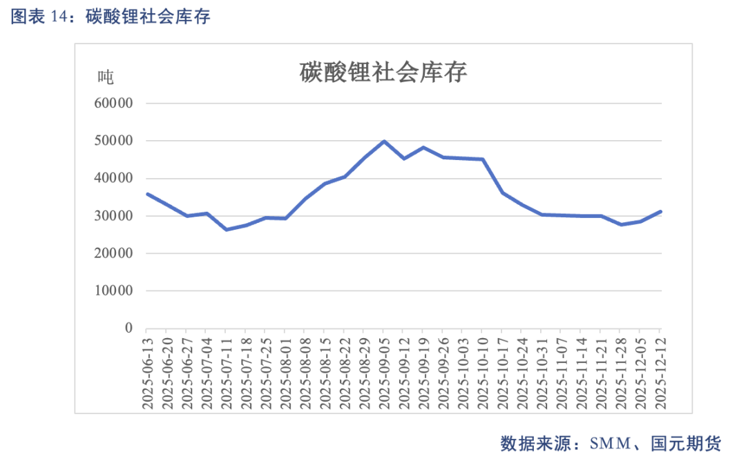 截至12月12日,SMM碳酸锂社会库存为31150吨,较上周减2670吨。