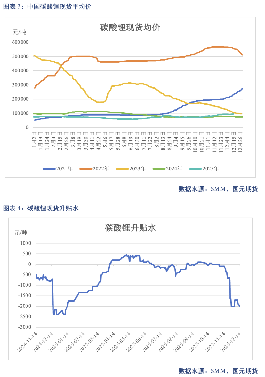 12月15日,中国电池级碳酸锂现货均价为94500元/吨,较上周增1250元/吨。12月15日,现货平均升贴水为-2000元/吨,较上周减200元/吨。