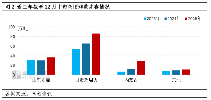 【导语】12月全国洋葱供应主体转为库存货源,库存量多少代表供应量的宽紧程度,从而主导价格波动。截至12月中旬,全国(包含甘肃、山东、内蒙古、黑吉)洋葱库存总量同比偏多且区域间出货表现竞争激烈、压力大等特点,市场看空情绪有所加重,价格上涨承压。