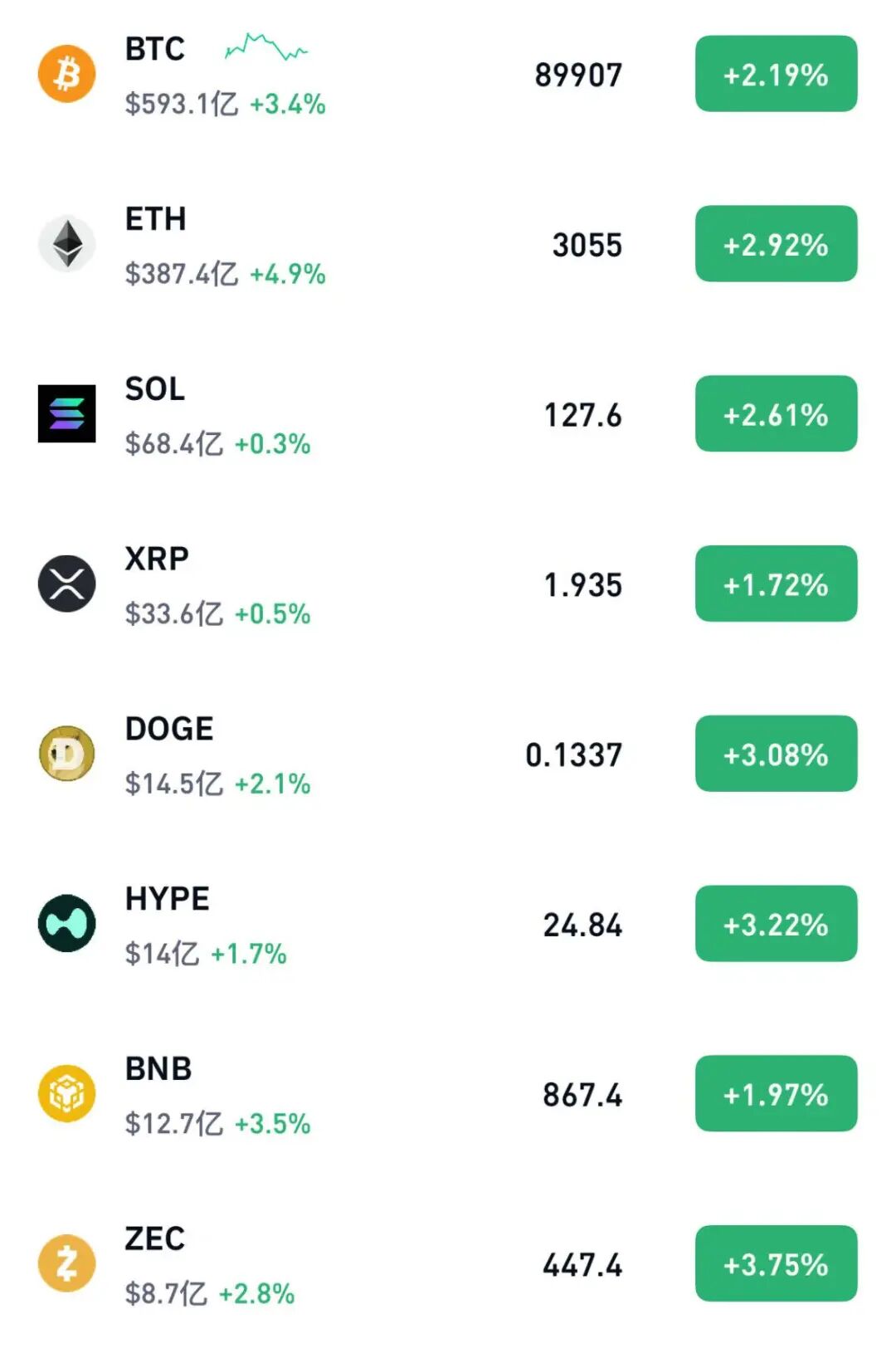 加密货币方面,多个币种集体拉升,比特币逼近90000美元关口。