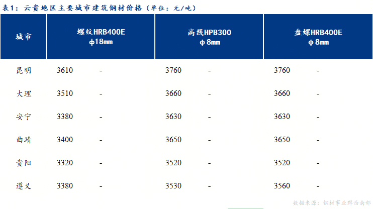 【今日价格】从云贵主要城市建筑钢材价格来看,昆明建筑钢材市场价格稳,贵阳建筑钢材市场价格稳。