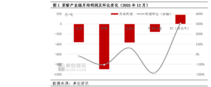 [导语]12月份,苯酚产业链产品多围绕供需主导、成本为辅的定价策略,价格呈现涨跌互现趋势。虽然部分产品在成本压力减缓以及供应缩量带动下,盈利状况明显向好修复,但产业链整体盈利状况修复有限,多数产品仍处于亏损状态。