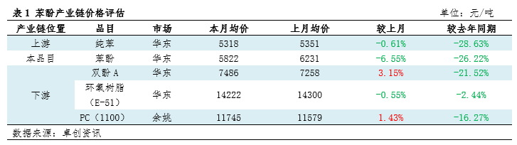 12月苯酚产业链价格涨跌互现