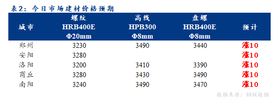 4、表列价格均为我的钢铁网前一日最后一次网价。