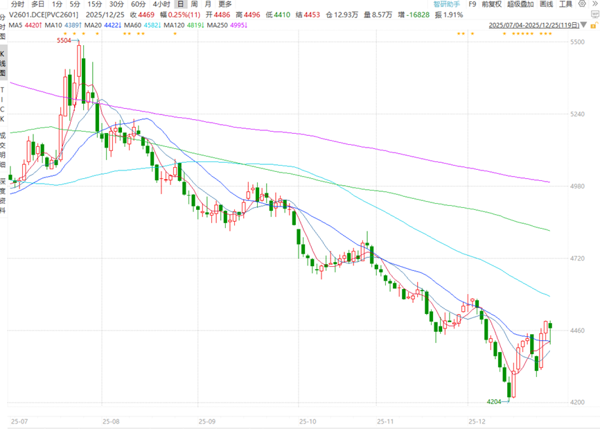 2025年12月12日,PVC期货价格跌到4204,为2009年上市以来的最低价。基本面高开工、大库存;仓单3月注销;整体商品情绪较弱等诸多因素带来的PVC的低价格。