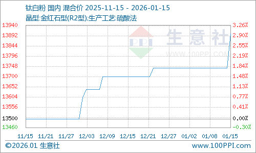 生意社:1月15日国内钛白粉市场坚挺向上