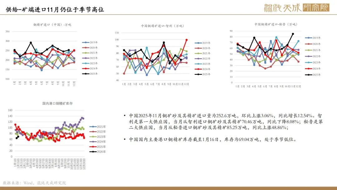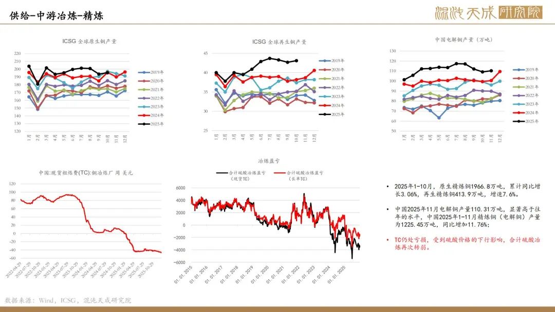 供应端:冶炼环境仍较差,部分冶炼厂仍面临亏损状态,含硫酸的冶炼利润再次转弱。矿端仍存干扰,双方谈判无果,智利Mantoverde铜矿罢工将持续。