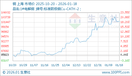 01月18日铜101810.00元/吨 30天上涨10.07%