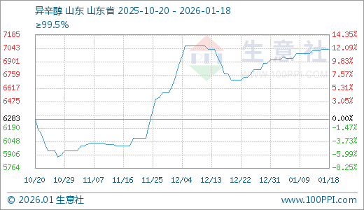 据生意社监测,异辛醇01月18日最新价格7033.33元/吨,最近60天上涨15.62%。