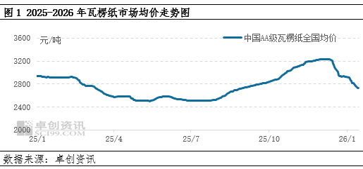 “纸”南针:供需矛盾与成本利空影响,1月瓦楞纸价格跌幅7%