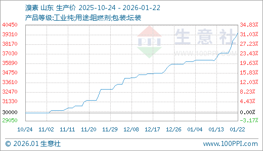 01月22日溴素39500.00元/吨 5天上涨6.47%
