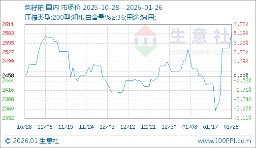 据生意社监测,菜籽粕01月26日最新价格2588.00元/吨,最近5天上涨8.47%。