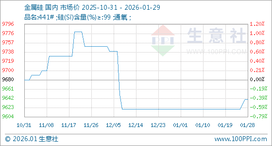 1月29日,生意社金属硅基准价为9640.00元/吨,与本月初(9620.00元/吨)相比,上涨了0.21%。