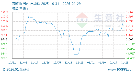 1月29日生意社菜籽油基准价为10238.00元/吨