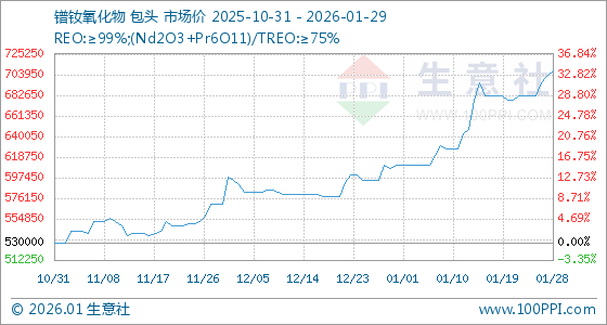 1月29日生意社镨钕氧化物基准价为707500.00元/吨