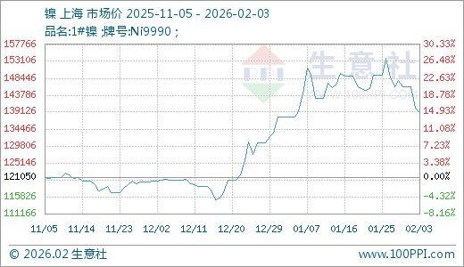 据生意社监测,镍02月03日最新价格138933.33元/吨,最近60天上涨15.47%。