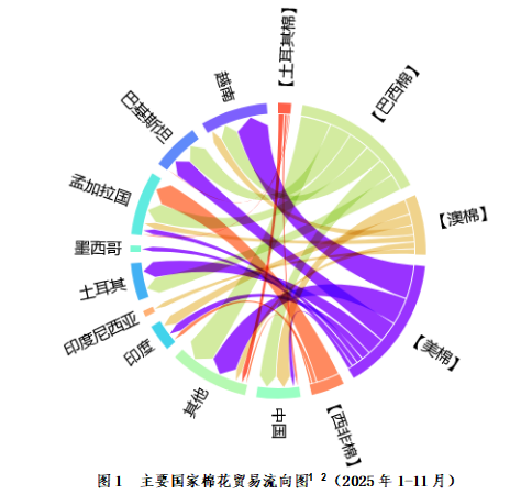2025年1-11月,美国棉花出口主要目的地为:越南69.29万吨,占比27.22%;巴基斯坦41.25万吨,占比16.20%;土耳其35.46万吨,占比13.93%;印度18.23万吨,占比7.16%;孟加拉国12.78万吨,占比5.02%;墨西哥11.96万吨,占比4.70%;中国10.05万吨,占比3.95%;印度尼西亚7.27万吨,占比2.86%。