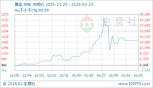 据生意社监测,黄金02月23日最新价格1107.47元/克,最近60天上涨10.53%。