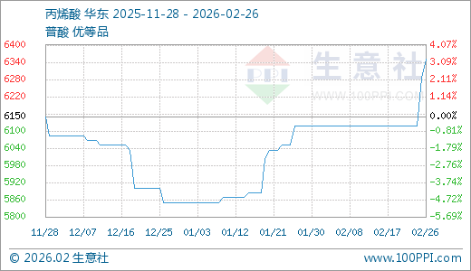 据生意社监测,丙烯酸(885829)02月26日最新价格6350.00元/吨,最近5天上涨3.81%。