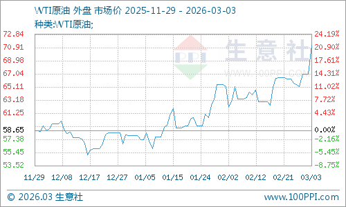 近期国际原油市场在地缘政治因素驱动下持续走强,成为推升塑料板块成本重心的最直接原因。受中东地缘局势再度升级影响,市场对全球原油供应的担忧加剧。3月3日,美国WTI原油期货4月合约结算价报74.56美元/桶,涨幅3.33美元或4.7%。布伦特原油期货5月合约结算价报81.40美元/桶,涨幅3.66美元或4.7%。原油作为塑料产业链的源头,其价格剧烈波动迅速向下游传导。油制烯烃路径成本支撑骤然增强,生产企业为缓解利润压力,纷纷上调出厂价格,从而引爆了本轮塑料板块的上涨行情。