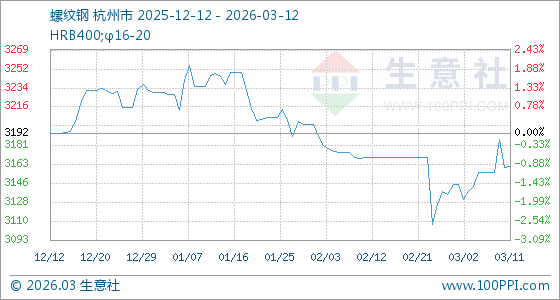 3月12日生意社螺纹钢基准价为3161.66元/吨
