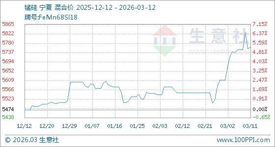 3月12日生意社锰硅基准价为5760.00元/吨