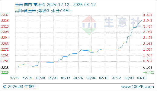 03月12日玉米2328.57元/吨 60天上涨3.49%