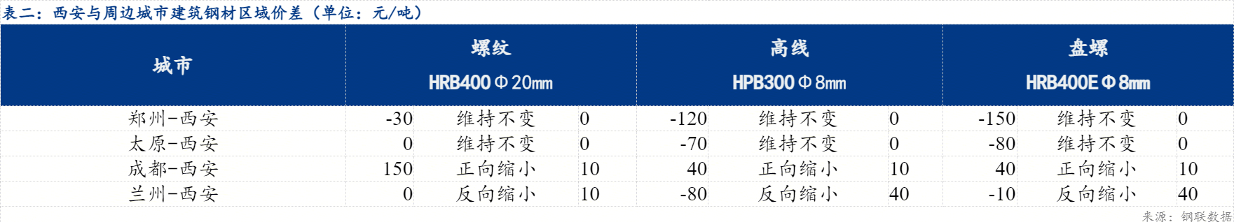 2、本地价格选取钢厂:西安(龙钢),兰州(酒钢),郑州(山西晋钢、高义),成都(威钢、龙钢),太原(首钢(000959)长治、美锦);