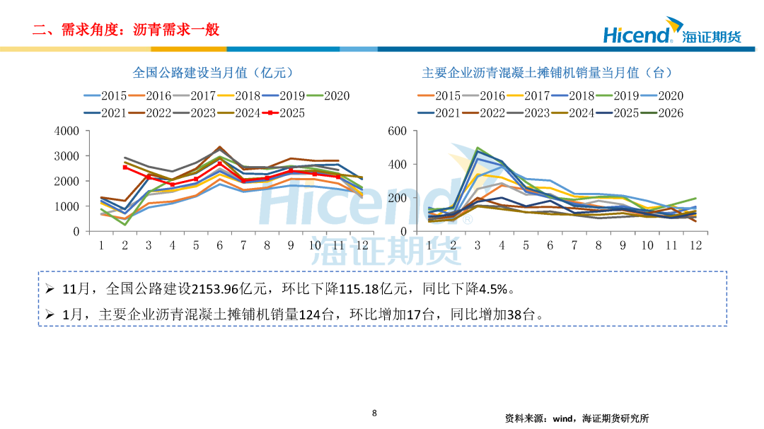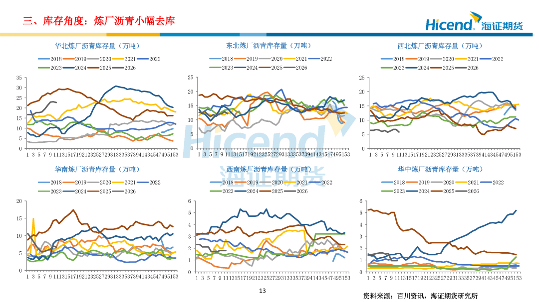 库存端:沥青炼厂小幅去库2.7万吨,社会库持续大幅累库11.13万吨。