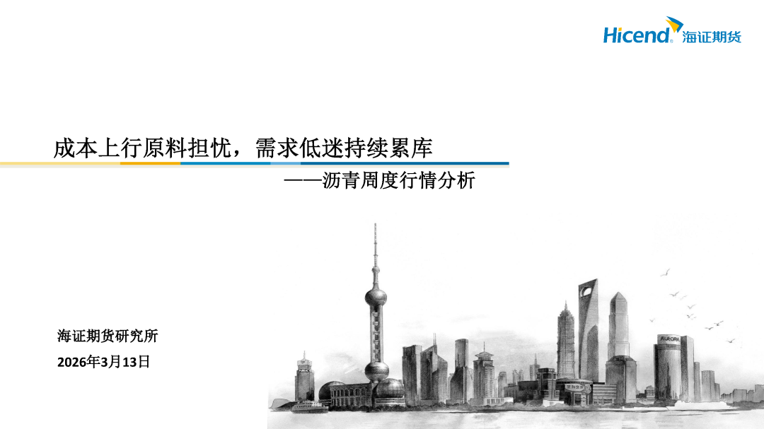 1、供应端:截至3月13日当周,沥青开工率周环比下降6.51个百分点至24.75%;沥青周产量环比下降10.39万吨至37.94万吨。多地炼厂沥青减产并限量发货。 2、需求端:沥青出货量同比低位,道路及防水改性沥青开工率季节性回升但同比偏低。 3、库存端:沥青炼厂小幅去库2.7万吨,社会库持续大幅累库11.13万吨。 4、单边:沥青在成本端的推动下,绝对价格走强,但需求低迷,走势不及原油,估值大幅回落,成本端不确定性大,沥青价格跟随波动为主; 5、期现及跨期套利:BU2603-2604无风险套利可持有至到期;