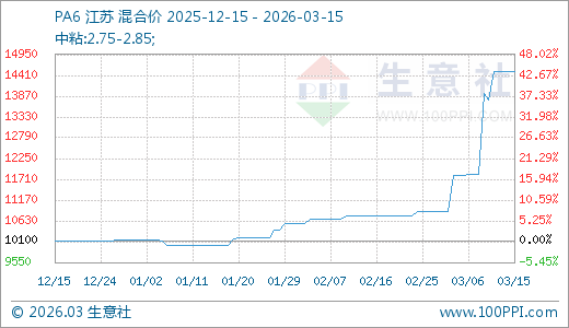 PA6 03月15日最新价格14500.00元/吨,最近5天上涨5.33%,10天上涨22.88%,20天上涨34.67%,60天上涨45.00%。