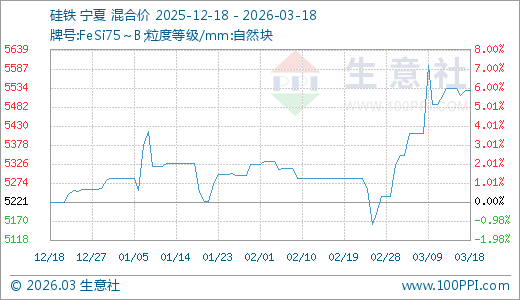 03月18日硅铁5528.57元/吨 20天上涨6.52%