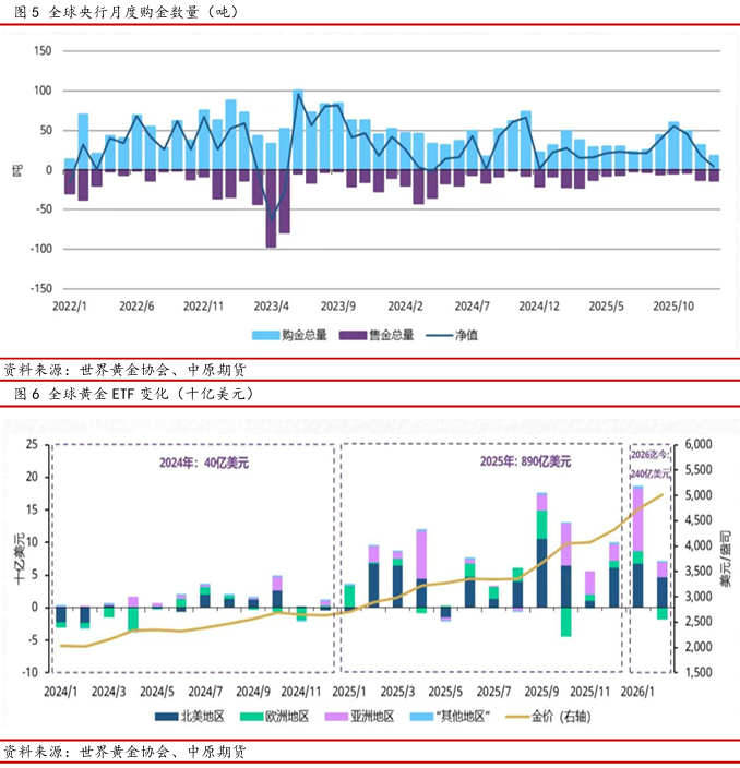 一方面,全球央行已连续多年净买入黄金,新兴市场为优化储备结构、分散美元资产风险 而提高黄金配置比例,构成金价中长期上行的重要支撑。另一方面,部分国家因财政或流动性 压力阶段性售金,会对市场情绪形成扰动,但规模总体有限,更多属于战术性调整。短期金价 的波动仍主要由美元走势、全球利率周期(883436)以及地缘政治风险主导,但在高位环境下,价格波动 往往更加剧烈。