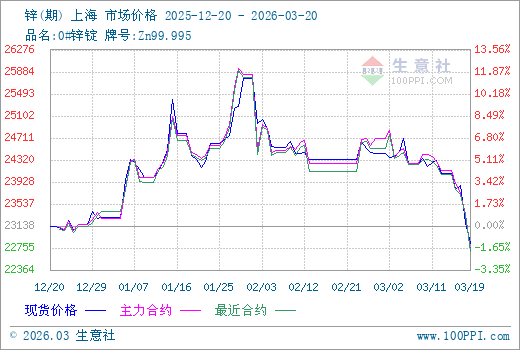 3月20日锌期货主力合约2605收盘价为22935元/吨。