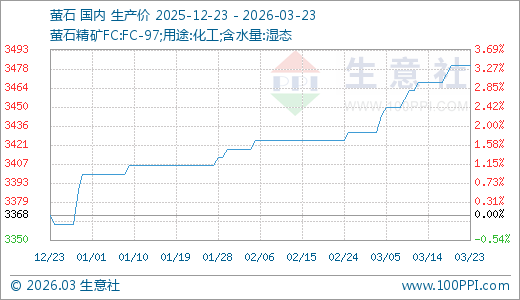 03月23日萤石3481.25元/吨 90天上涨3.34%