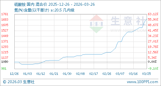 3月26日生意社硫酸铵基准价为1696.67元/吨