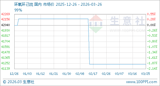 3月26日,生意社环氧环己烷基准价为41233.33元/吨,与本月初持平。