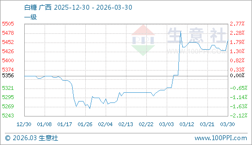 白糖03月30日最新价格5460.00元/吨,最近60天上涨3.05%。
