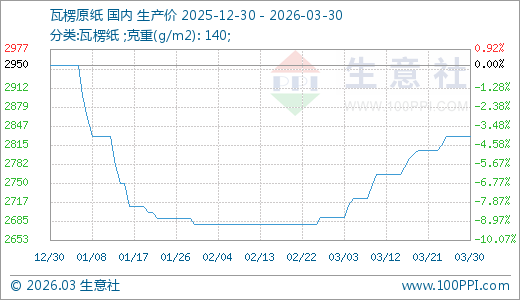 据生意社监测,瓦楞纸03月30日最新价格2830.00元/吨,最近30天上涨5.13%。