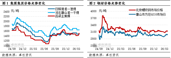 3月焦煤价格先降后涨,焦炭价格先降后稳,钢材价格震荡偏强运行。