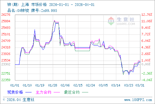 4月1日锌期货主力合约2605收盘价为23550元/吨。