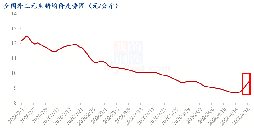 据Mysteel农产品(850200)监测数据显示,截至4月18日,全国外三元生猪出栏均价为9.51元/公斤,较前一日上涨上调0.34元/公斤,突破2月份以来的单日最大涨幅。生猪市场经历两个月时间的底部震荡后,自4月15日开始,价格急速上行,市场预期瞬间转强,市场情绪空前高涨。