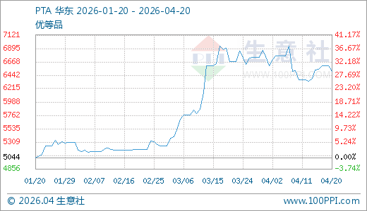 PTA 04月20日最新价格6508.14元/吨,最近60天上涨25.60%,90天上涨29.00%。