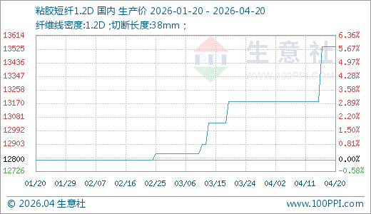 粘胶(884043)短纤04月20日最新价格13540.00元/吨,最近60天上涨5.78%。